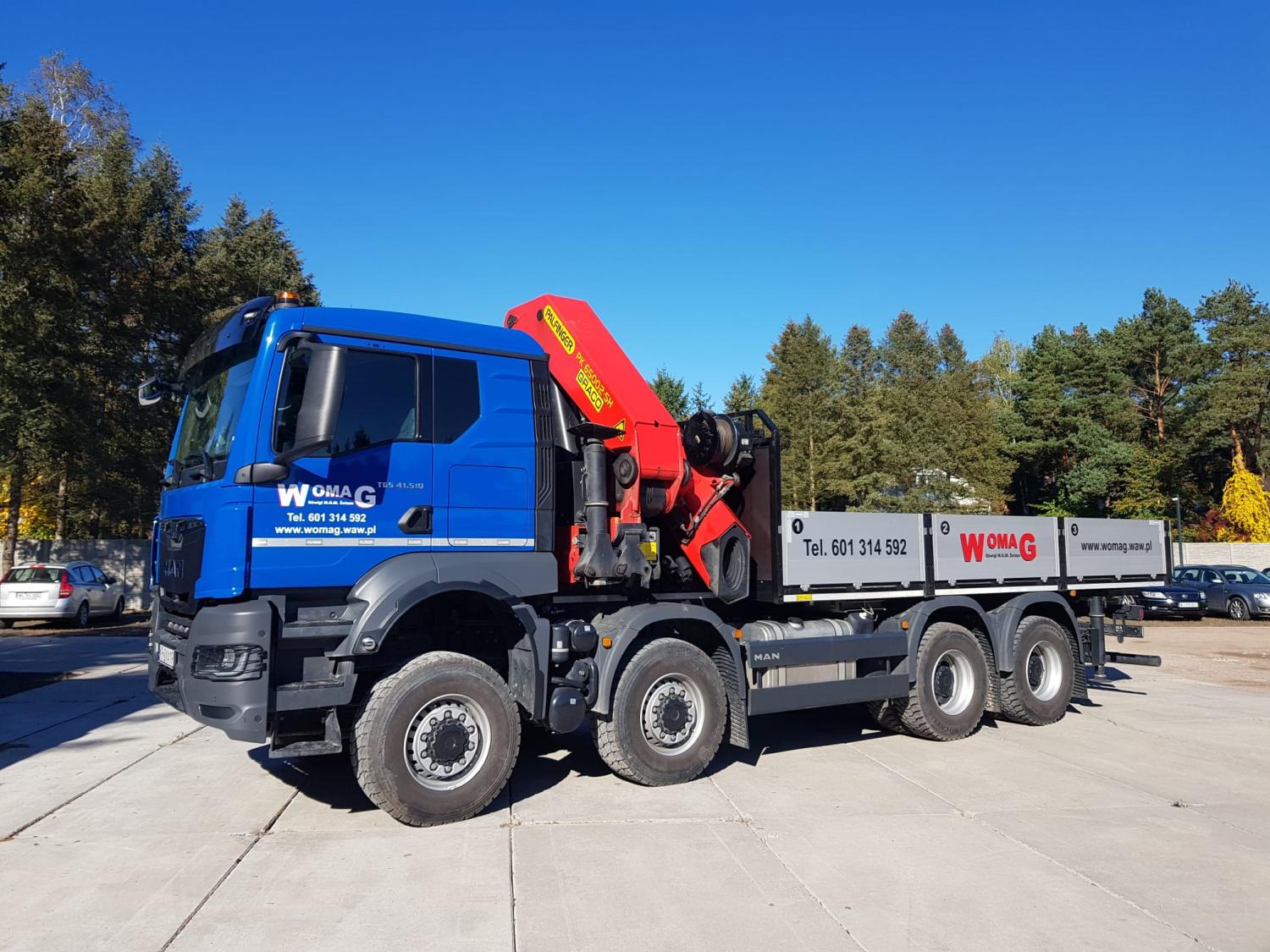 | Samochód skrzyniowy MAN 26.403 | ładowność 14 ton + 14 ton | skrzynia 7,5 m + przyczepa 3 metry | platforma, kontener |